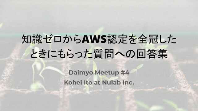 知識ゼロからAWS認定を全冠した ときにもらった質問への回答集 Daimyo Meetup #4 Kohei Ito at Nulab Inc.