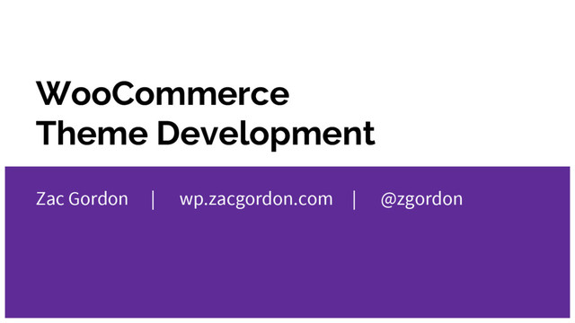 WooCommerce Theme Development Zac Gordon | wp.zacgordon.com | @zgordon