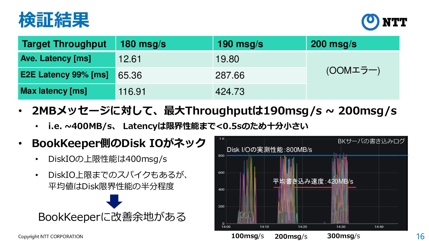 16 Copyright NTT CORPORATION 検証結果 Target Throughput 180 msg/s 190