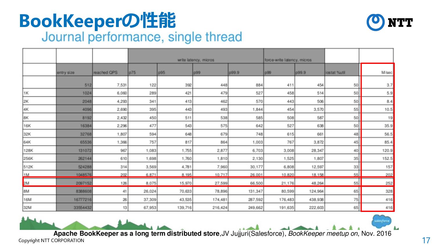 17 Copyright NTT CORPORATION BookKeeperの性能 Apache BookKeeper as a long