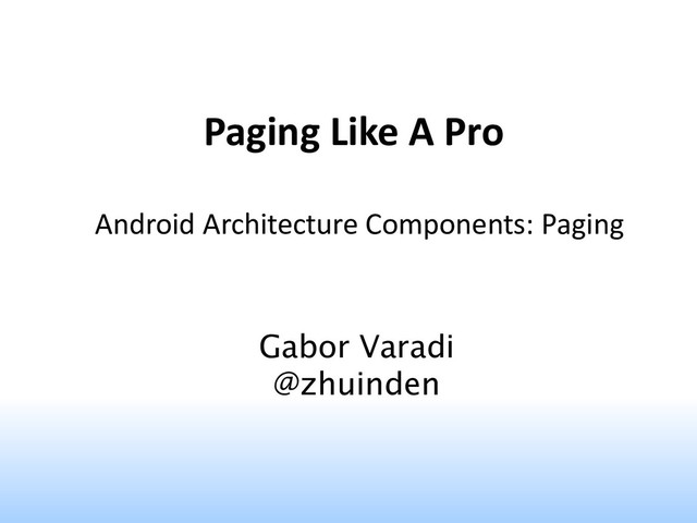 pages to memory that we actually need – reading the pages (and elements) should occur on background thread • Paging Library gives us: – PagedList: exposes data – DataSource: fills paged list – DataSource.Factory: creates a data source – PagedListAdapter: consumes paged list – LivePagedListBuilder: creates new datasource after invalidation