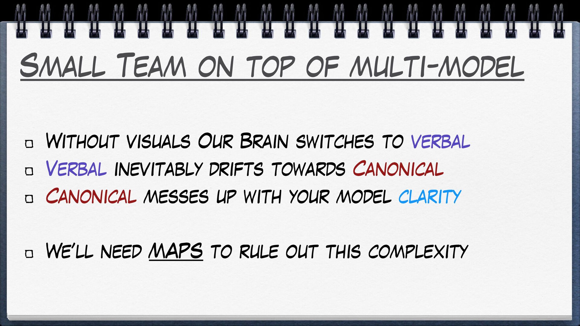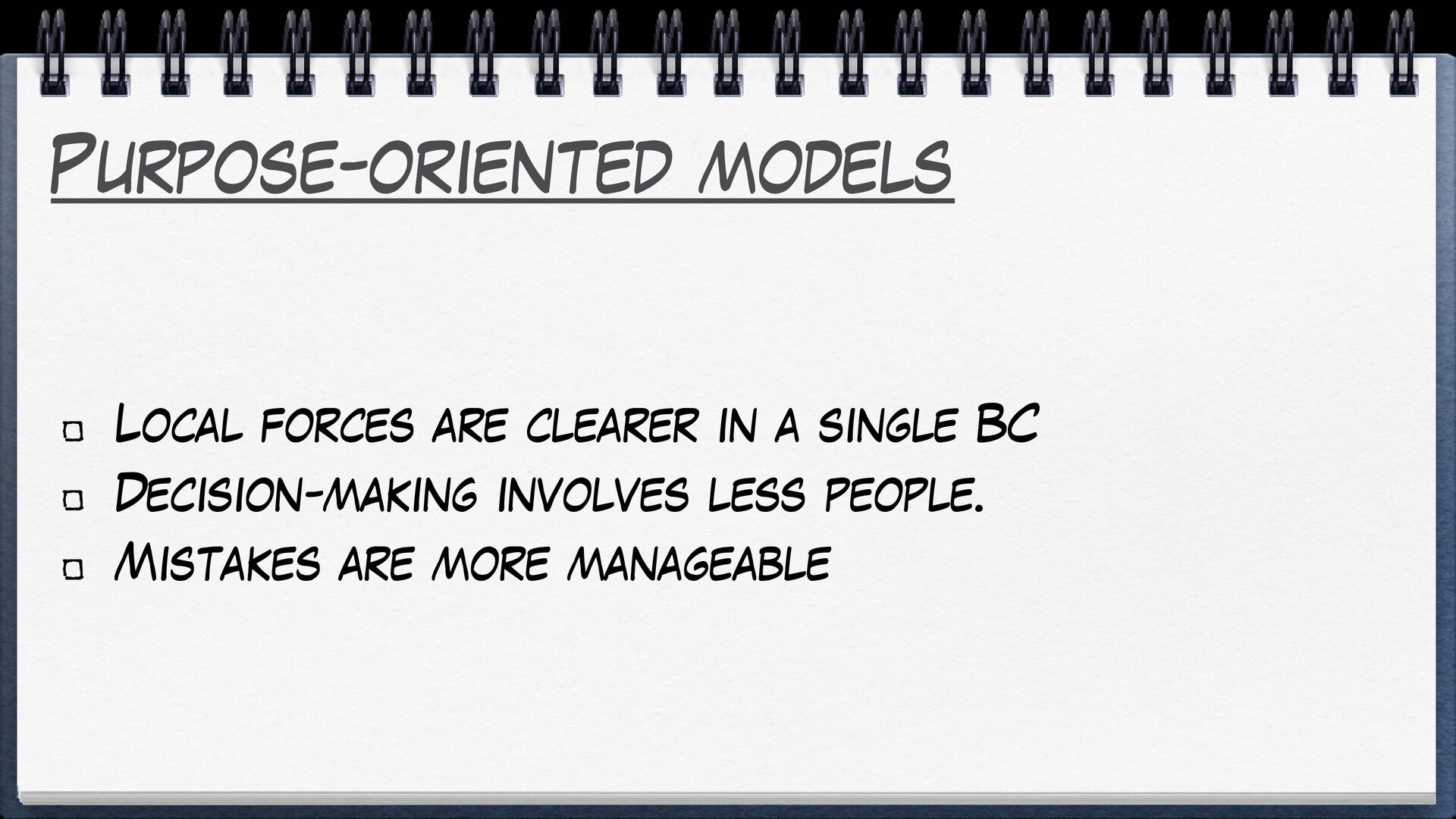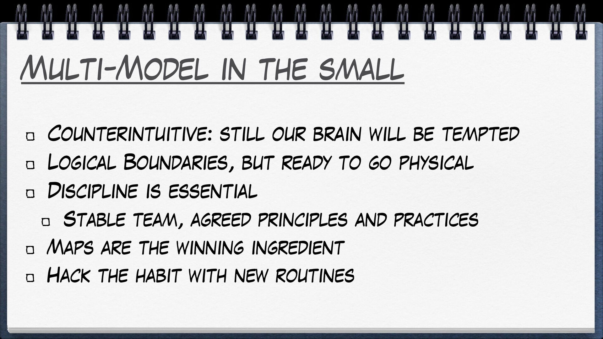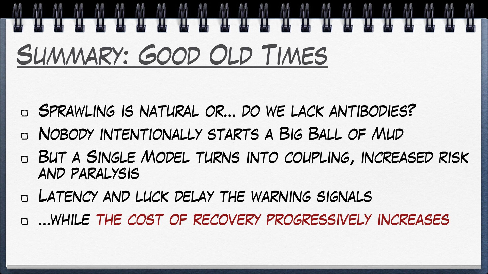 Without a constant design effort, models will tend to rot, irresistibly attracted to the Big Ball of Mud.