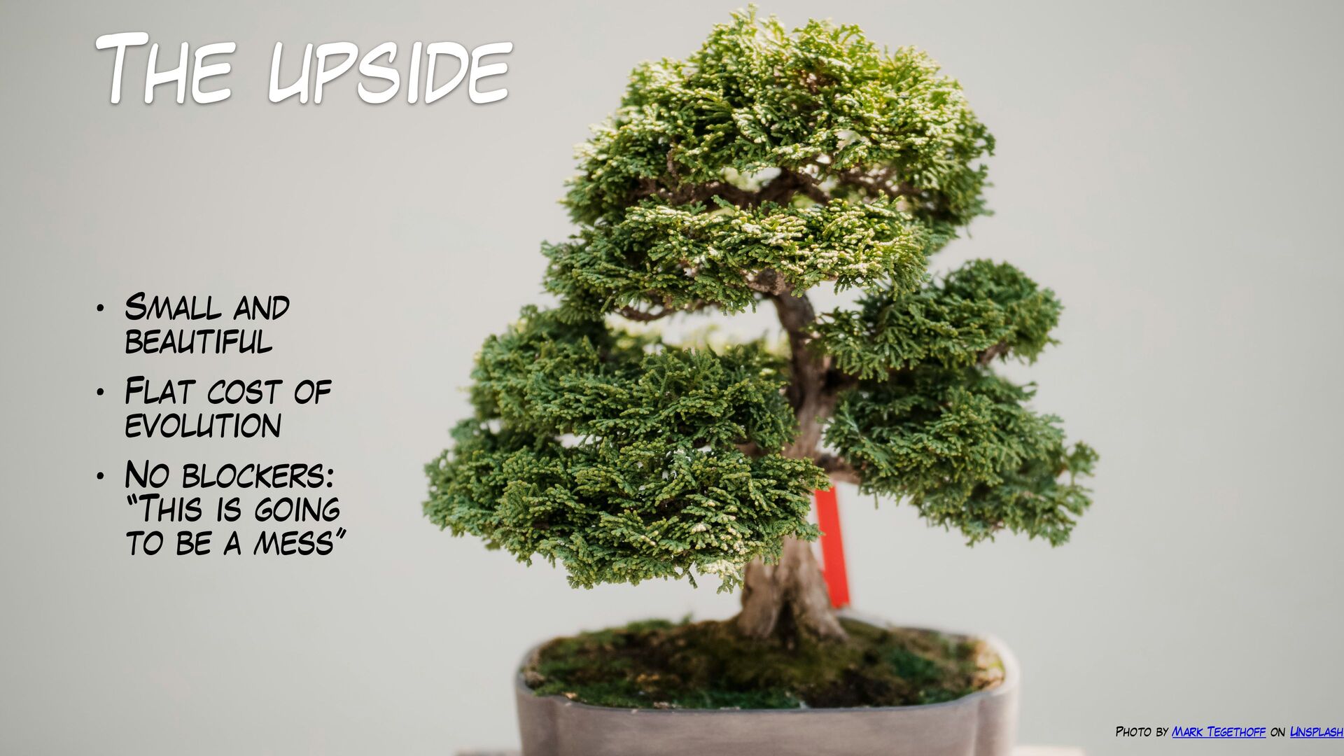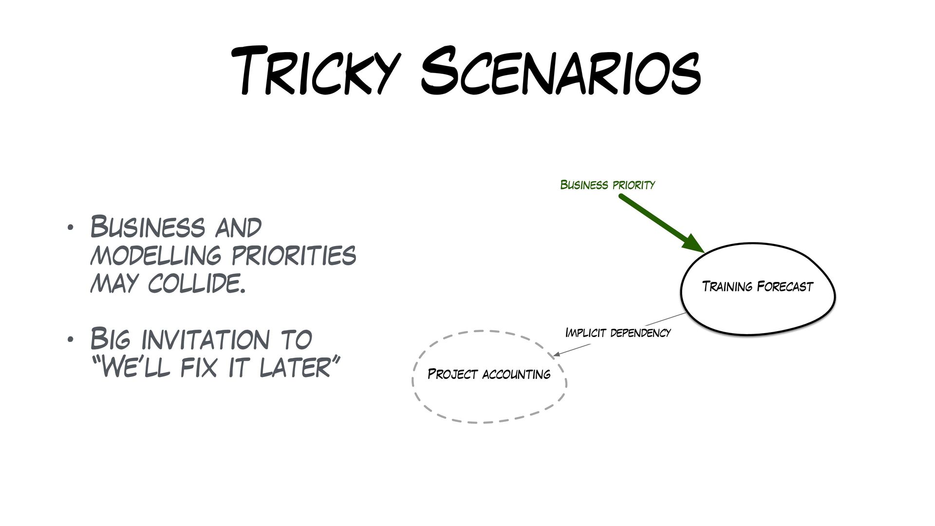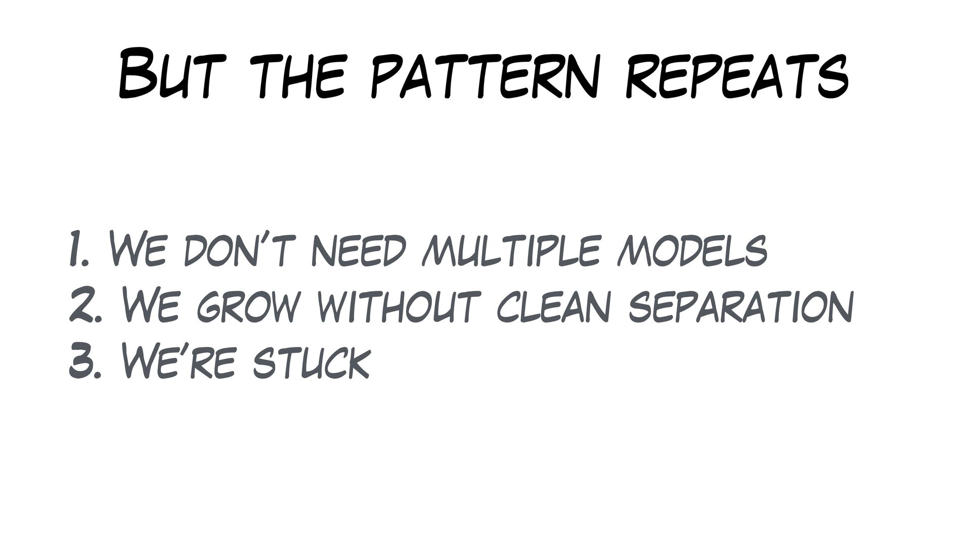 Partitioning the model early on could be the solution, but many forces are conspiring in the wrong direction.