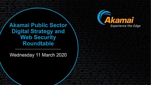 Opening Comments Simon Blagden CBE, Industry Chair of the Parliamentary ICT Forum and Former Non-Executive Chairman of Fujitsu UK Cyber Security & Digital Agenda Matt Warman MP, Parliamentary Under-Secretary of State for Digital, Culture, Media and Sport (Minister for Digital and Broadband) Threat Landscape Richard Meeus, Security Technology and Strategy Director, Akamai Open Discussions Moderated by Simon Blagden CBE 1:00 PM Networking Lunch with a Tour of Akamai’s Network Operations Centre 2:00 PM Close