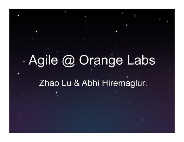Agile @ Orange Labs Zhao Lu & Abhi Hiremaglur