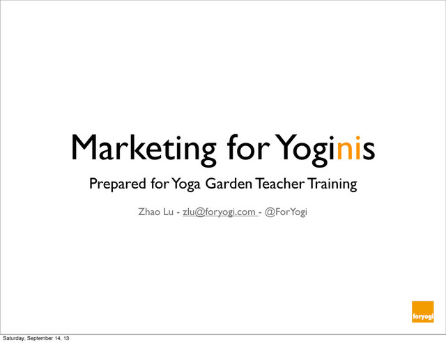 year - of course • Yoga retreat in Thailand - why not? • Came back still lost - but... • Do something I’m passionate about • Work for myself Saturday, September 14, 13
