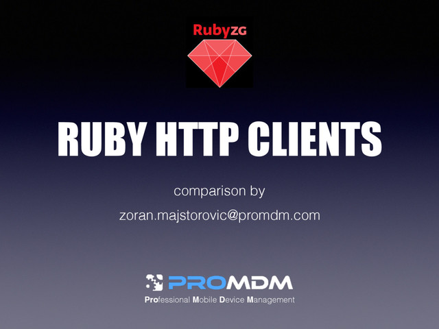 ability to modify its behavior with middlewares, swap backend libraries Net::HTTP built-in, no extra dependency, robustness and stability Rest-Client easy API, just works, can do file uploads HTTPClient thread-safe, uses keepalive, fast, supports http streaming Excon easy to use, customize, easy to handle errors, has feature to debug HTTP.rb thread safety (jRuby), a sane API for SSL (e.g. mutual auth) Typhoeus concurrent requests and multipart posts actually work Curb benchmarks showed that curb is by far the fastest one Patron nicer API than Curb, easy to set timeout, easy to log and do REST actions