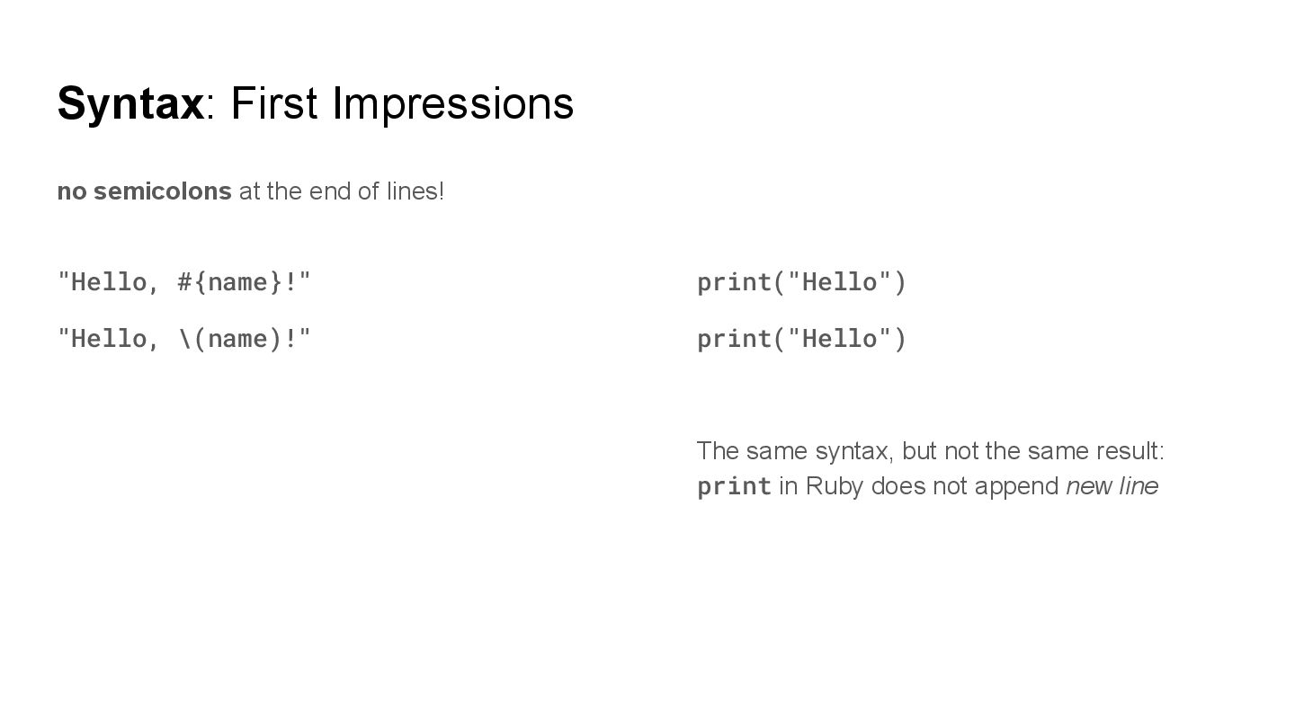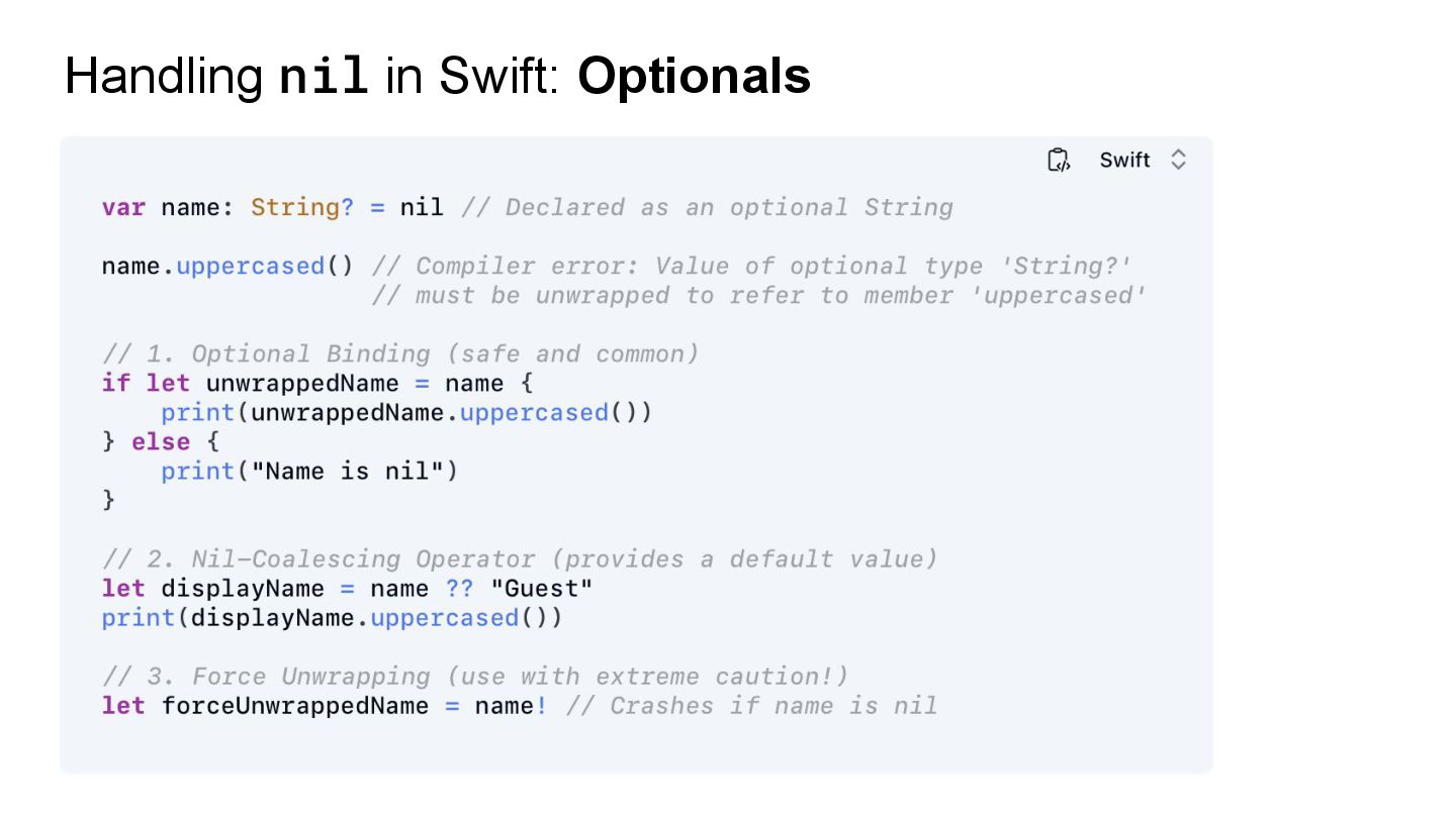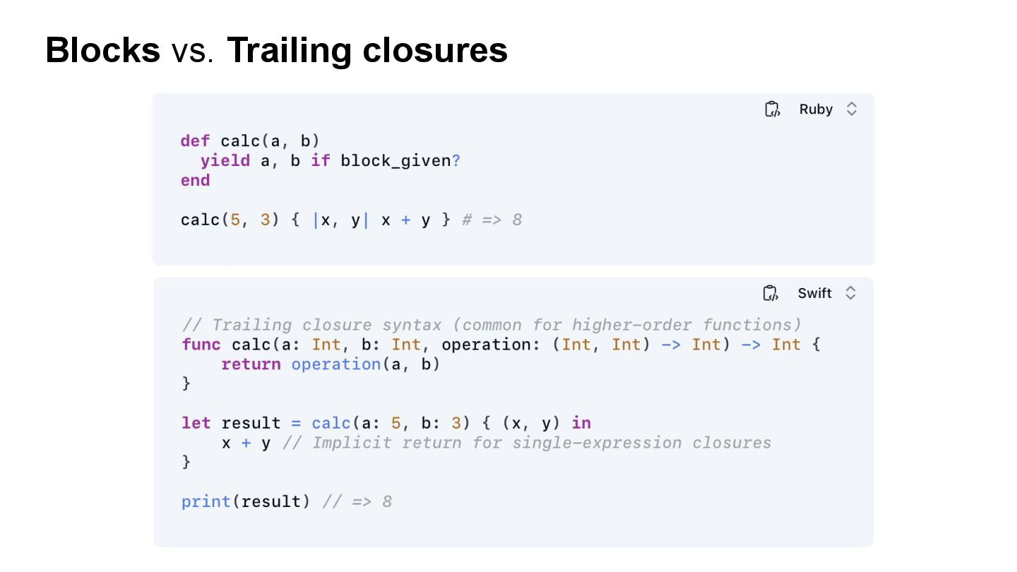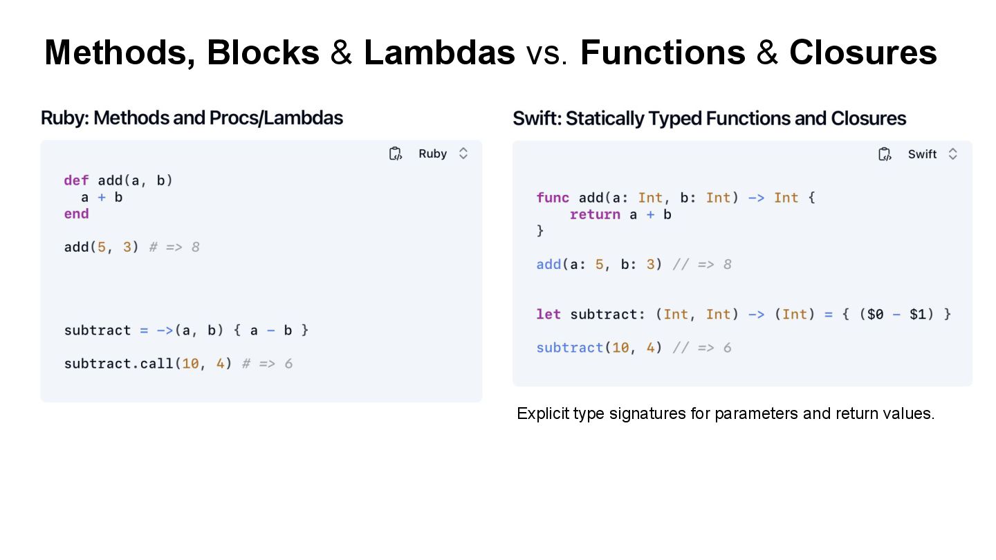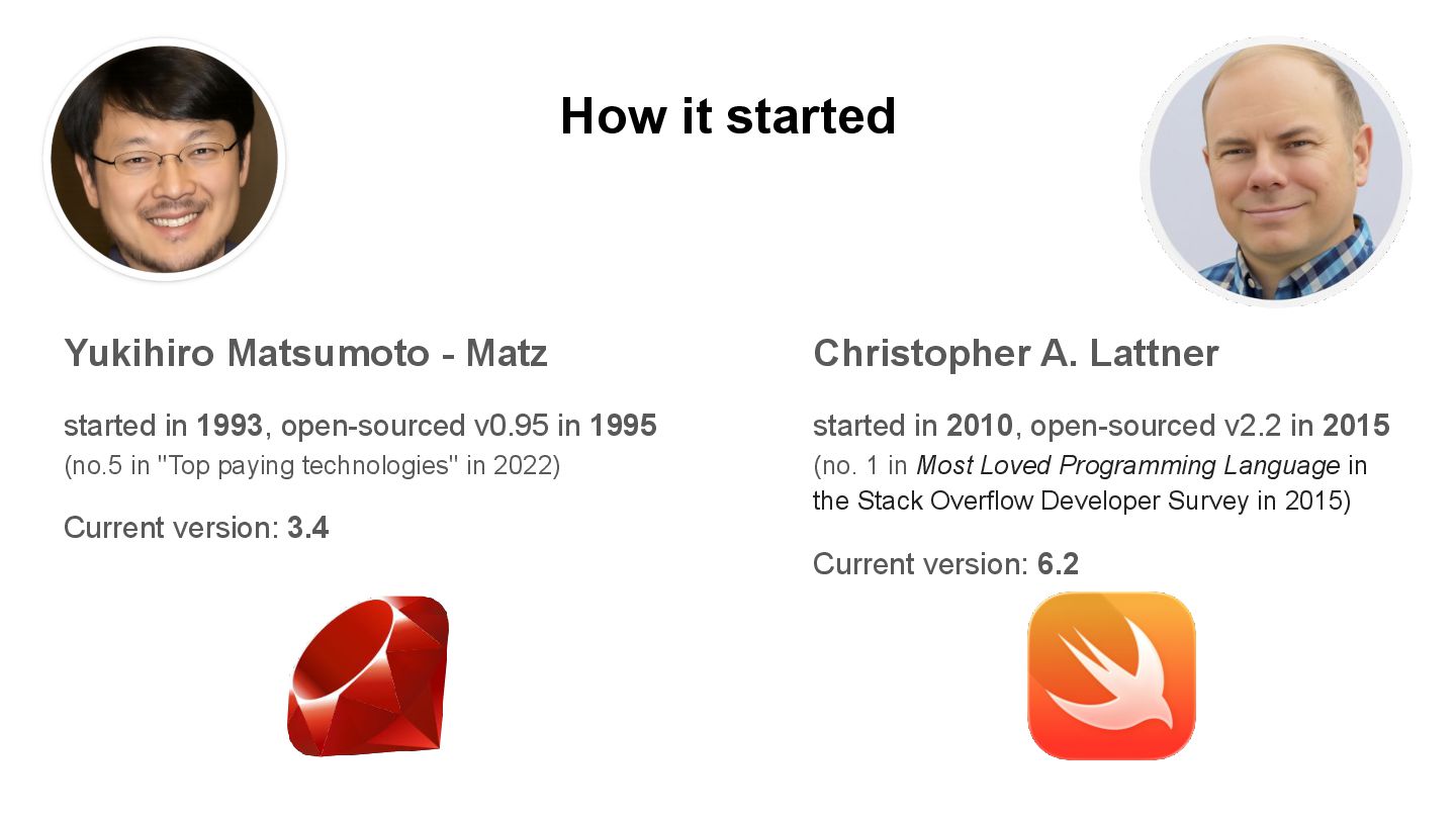 interpreted Ruby. ◦ Statically typed, compiled, automatic reference counting (ARC). • Expressive: Concise yet powerful syntax, inspired by modern languages. • Growing Ecosystem: Strong backing from Apple, active community: ◦ cross-platform: iOS, macOS, Linux, and Windows ◦ coming to Android devices (early stage) ◦ server frameworks (Vapor, Kitura, Hummingbird, and more)