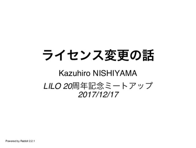 ライセンス変更の話 Kazuhiro NISHIYAMA LILO 20周年記念ミートアップ 2017/12/17 Powered by Rabbit 2.2.1
