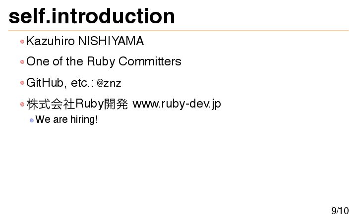 favorite environments better: Set up your own CI environment to run chkbuild. Use start-rubyci in ruby/chkbuild. Add your results to rubyci.org. Contact the rubyci.org maintainers to add your chkbuild output URLs. If tests fail, fix them, report issues, or take other actions. 8/10