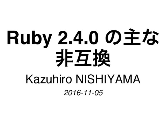 Ruby 2.4.0 の主な非互換についての概要を話します。