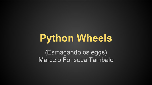 empacotamento relacionados que temos hoje (PEP 376 e a PEP 426) 2. O Wheel implementa essas coisas. 3. Ele também fornece um arquivo convenção de nomenclatura melhor. 4. Ao contrário do .egg, o wheel será um padrão totalmente documentado no nível binário que é realmente fácil de instalar, mesmo se você não quiser usar a implementação de referência.