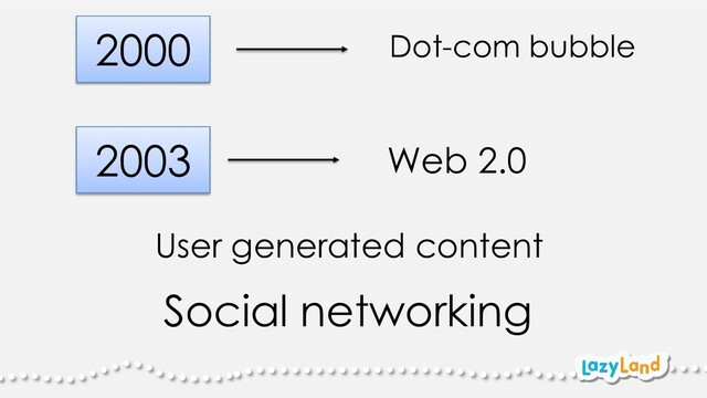 2000 Dot-com bubble 2003 Web 2.0 User generated content Social
