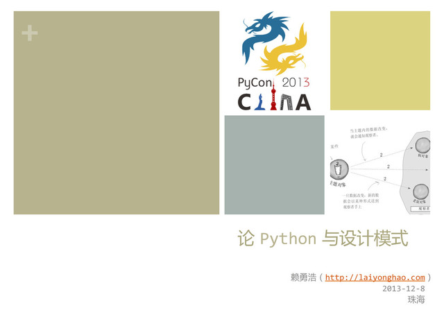 + 论 Python 与设计模式 赖勇浩(http://laiyonghao.com) 2013-‐12-‐8