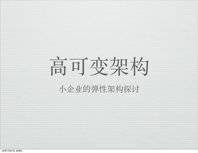 ⾼高可变架构 ⼩小企业的弹性架构探讨 13年7⽉月27⽇日 星期六
