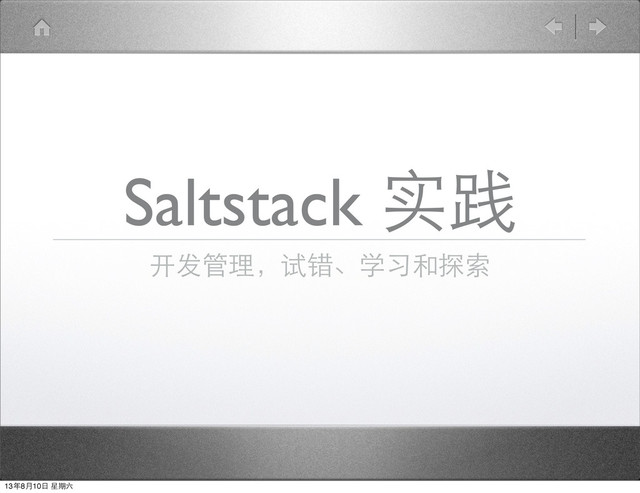 Saltstack 实践 开发管理,试错、学习和探索 13年8⽉月10⽇日 星期六
