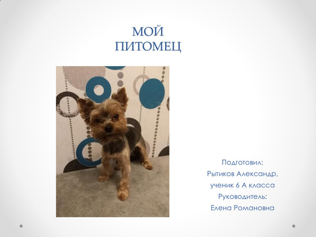 Он любит играть, особенно с мячом, за которым он бегает. Пищеварение у «Йоркширских терьеров» не самое лучшее. Им нельзя есть молочные изделия и мясные, кроме мяса для собак. Когда кто-то ест на кухне, Тима прибегает, встает на задние лапки, и выпрашивает чего ни будь со стола.