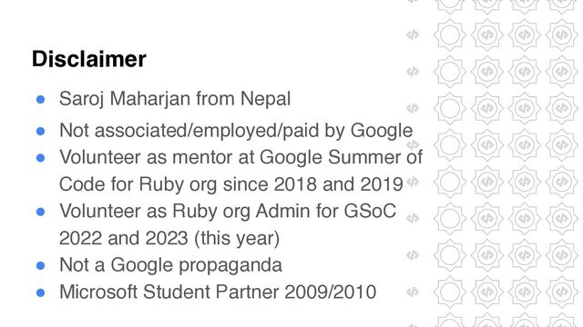 Saroj Maharjan is a mentor and admin for Ruby organization at GSoC since past 5 years.