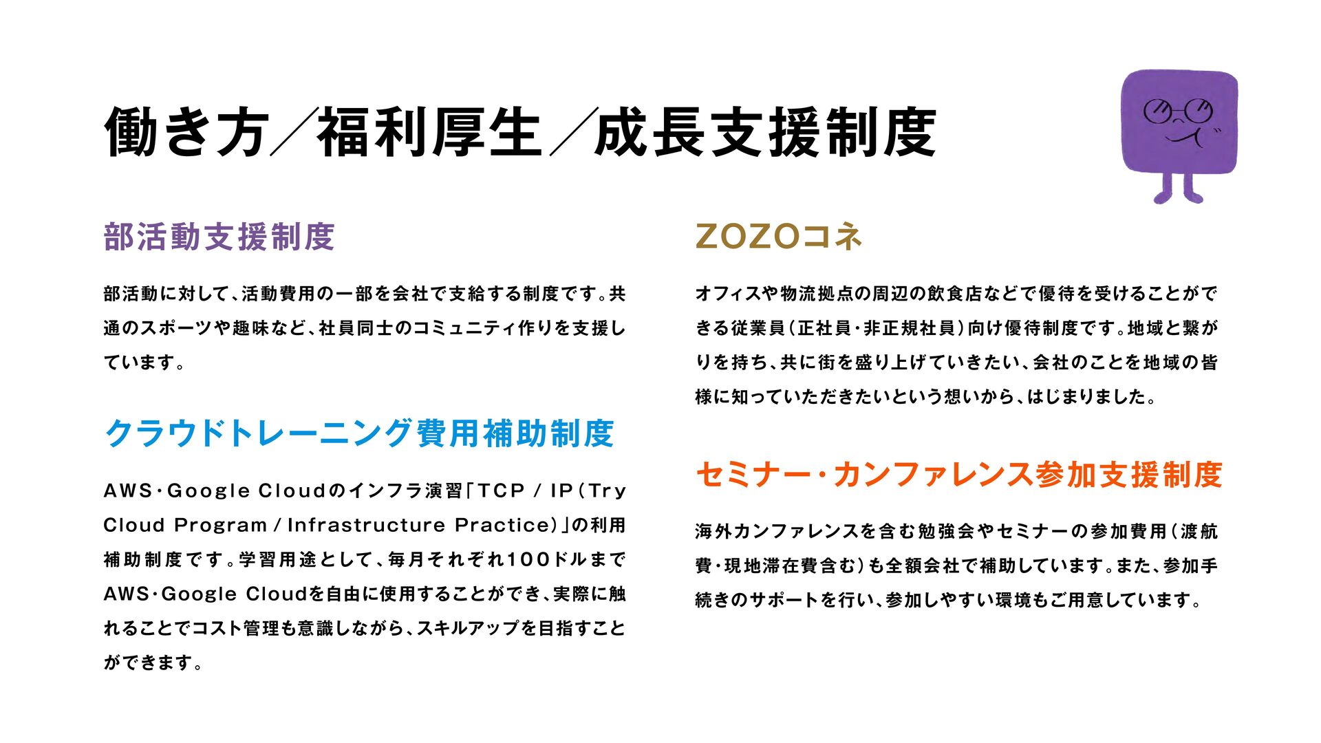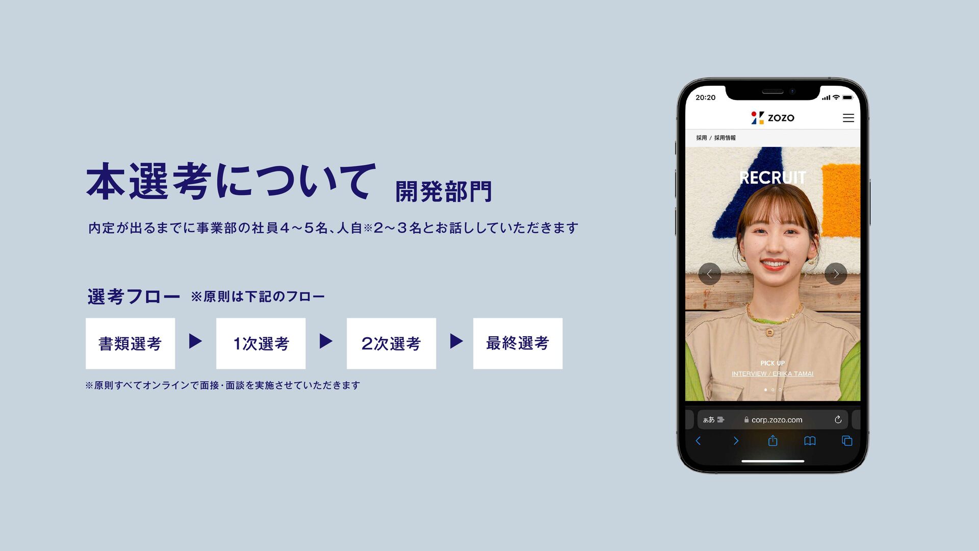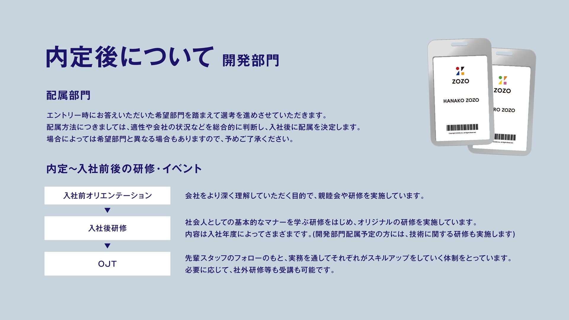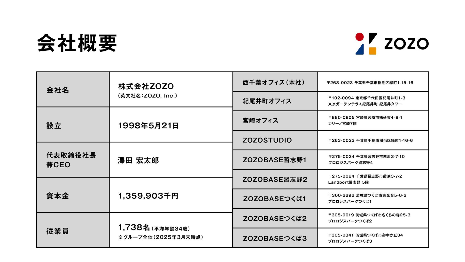 ZOZOの企業理念は、 「世界中をカッコよく、世界中に笑顔を。」 ファッションへの愛と、テクノロジーの力で、 もっともっと成長し、たくさんの人に笑顔を届けたい。 そのためには、あなたの力が必要です。 飛び込んできてください、あなたの入社を心から歓迎いたします。