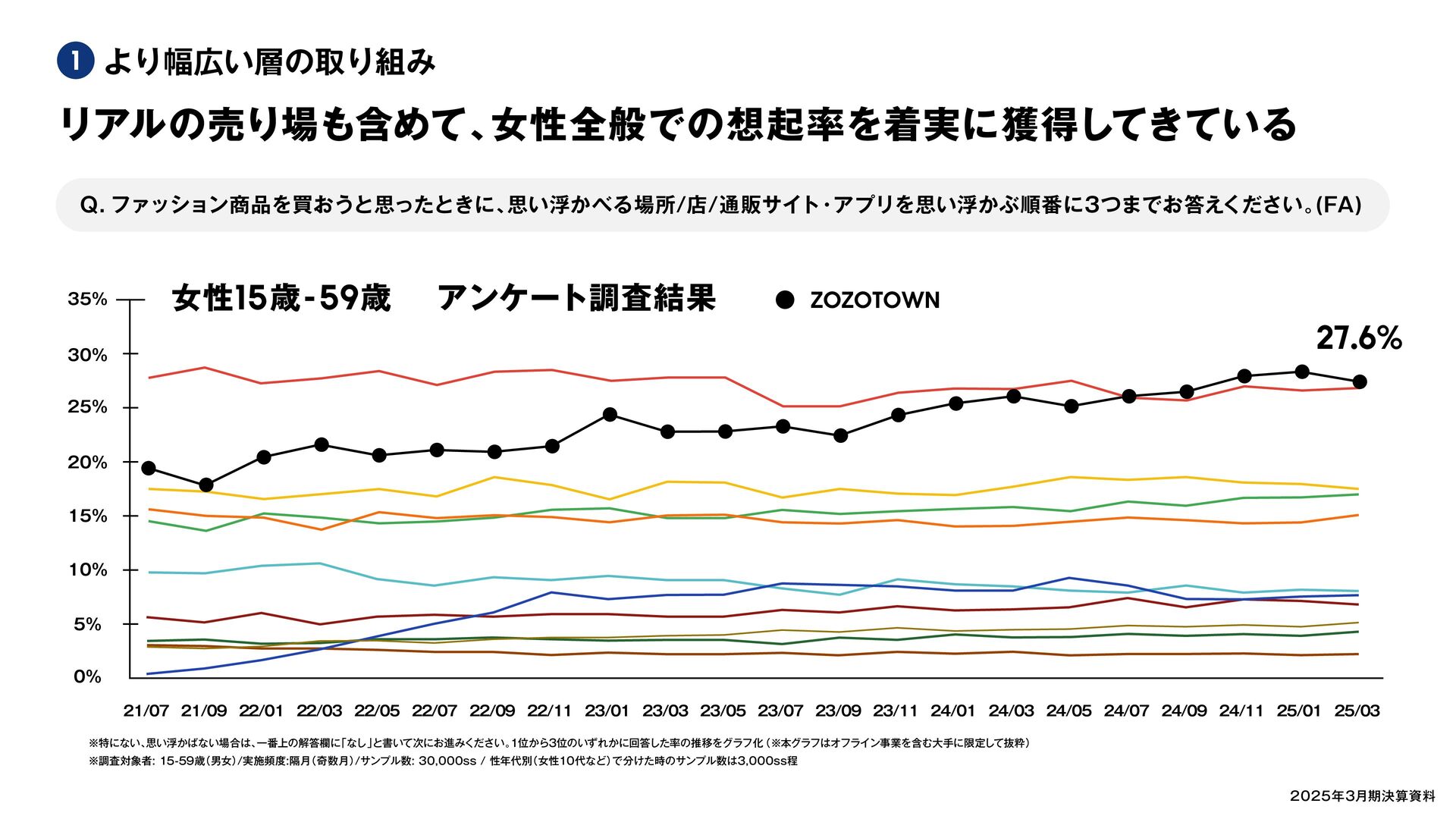 ͱॻ͍ͯ࣍ʹ͓ਐΈ͍ͩ͘͞ɻ Ґ͔ΒҐͷ͍ͣΕ͔ʹճ౴ͨ͠཰ͷਪҠΛάϥϑԽ ʢ˞ຊάϥϑ͸ΦϑϥΠϯࣄۀΛؚΉେखʹݶఆͯ͠ൈਮʣ ˞ௐࠪର৅ऀࡀ ʢஉঁʣ ࣮ࢪස౓ִ݄ ʢح਺݄ʣ αϯϓϧ਺ TTੑ೥୅ผ ʢঁੑ୅ͳͲʣ Ͱ෼͚ͨ࣌ͷαϯϓϧ਺͸ TTఔ                               ZOZOTOWN 27.6% 2ϑΝογϣϯ঎඼Λങ͓͏ͱࢥͬͨͱ͖ʹɺ ࢥ͍ු͔΂Δ৔ॴళ௨ൢαΠτɾΞϓϦΛࢥ͍ු͔Ϳॱ൪ʹͭ·Ͱ͓౴͍͑ͩ͘͞ɻ '" 25 ೥݄ظܾࢉࢿྉ