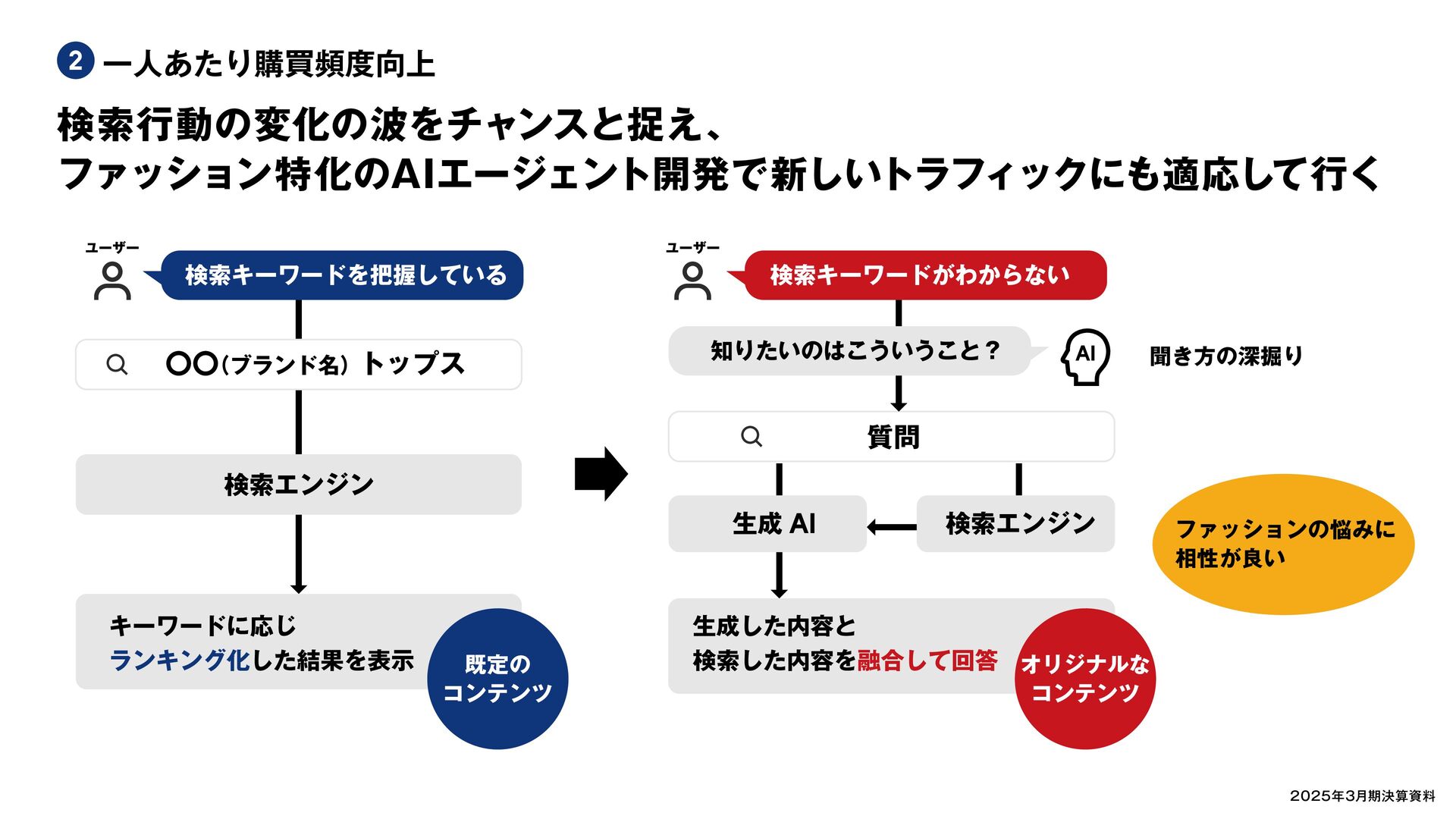 24. 2 Ұਓ͋ͨΓߪങස౓޲্ ݕࡧߦಈͷมԽͷ೾Λνϟϯεͱଊ͑ɺ ϑΝογϣϯಛԽͷ"*ΤʔδΣϯτ։ൃͰ৽͍͠τϥϑΟοΫʹ΋దԠͯ͠ߦ͘ ʓʓ ʢϒϥϯυ໊ʣ τοϓε ݕࡧΩʔϫʔυ͕Θ͔Βͳ͍ ࣭໰ ݕࡧΤϯδϯ