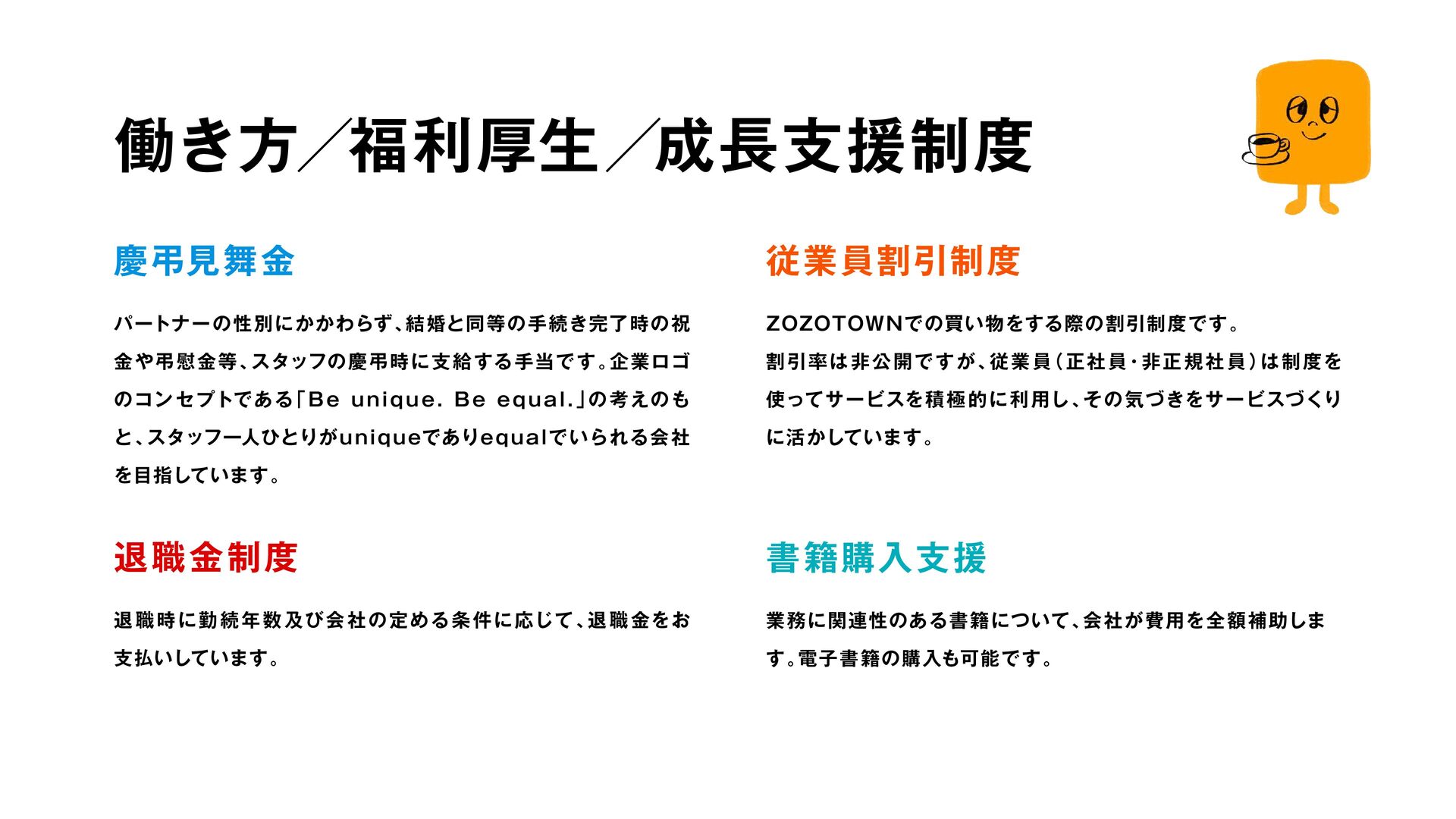 ͱɺ ελοϑҰਓͻͱΓ͕VOJRVFͰ͋ΓFRVBMͰ͍ΒΕΔձࣾ Λ໨ࢦ͍ͯ͠·͢ɻ ୀ৬࣌ʹۈଓ೥਺ ٴͼձࣾͷఆΊΔ৚݅ʹԠͯ͡ɺ ୀ৬ۚΛ͓ ࢧ෷͍͍ͯ͠·͢ɻ ैۀһׂҾ੍౓ ;0;0508/Ͱͷങ͍෺Λ͢ΔࡍͷׂҾ੍౓Ͱ͢ɻ ׂҾ཰͸ඇެ։Ͱ͕͢ɺ ैۀһ ʢਖ਼ࣾһɾඇਖ਼نࣾһʣ ͸੍౓Λ ࢖ͬͯαʔϏεΛੵۃతʹར༻͠ɺ ͦͷؾ͖ͮΛαʔϏεͮ͘Γ ʹ׆͔͍ͯ͠·͢ɻ ॻ੶ߪೖࢧԉ ۀ຿ʹؔ࿈ੑͷ͋Δॻ੶ʹ͍ͭͯɺ ձ͕ࣾඅ༻Λશֹิॿ͠· ͢ɻ ిࢠॻ੶ͷߪೖ΋ՄೳͰ͢ɻ ಇ͖ํʗ෱རްੜʗ੒௕ࢧԉ੍౓