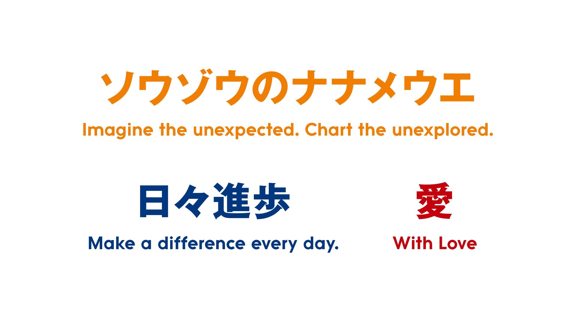 اۀཧ೦ ʮੈքதΛΧοίΑ͘ɺ ੈքதʹসإΛɻ ʯ ͷ࣮ݱʹ޲͚ͯɺ ೔ʑτϥΠˍΤϥʔΛ܁Γฦ͠ͳ͕Βલਐ͠ɺ ϑΝογϣϯͱςΫϊϩδʔͷྗΛ͔͚߹Θͤͨ ʮι΢κ΢ͷφφϝ΢Τʯ Λ͍͘΍ΓํͰ࣌୅ͷઌ୺Λ૸Γଓ͚͍͖ͯ·͢ɻ اۀཧ೦