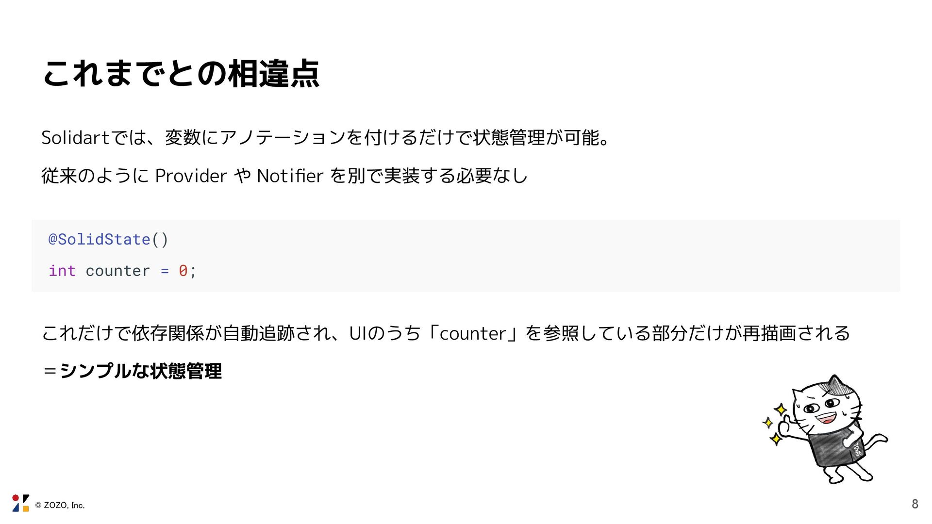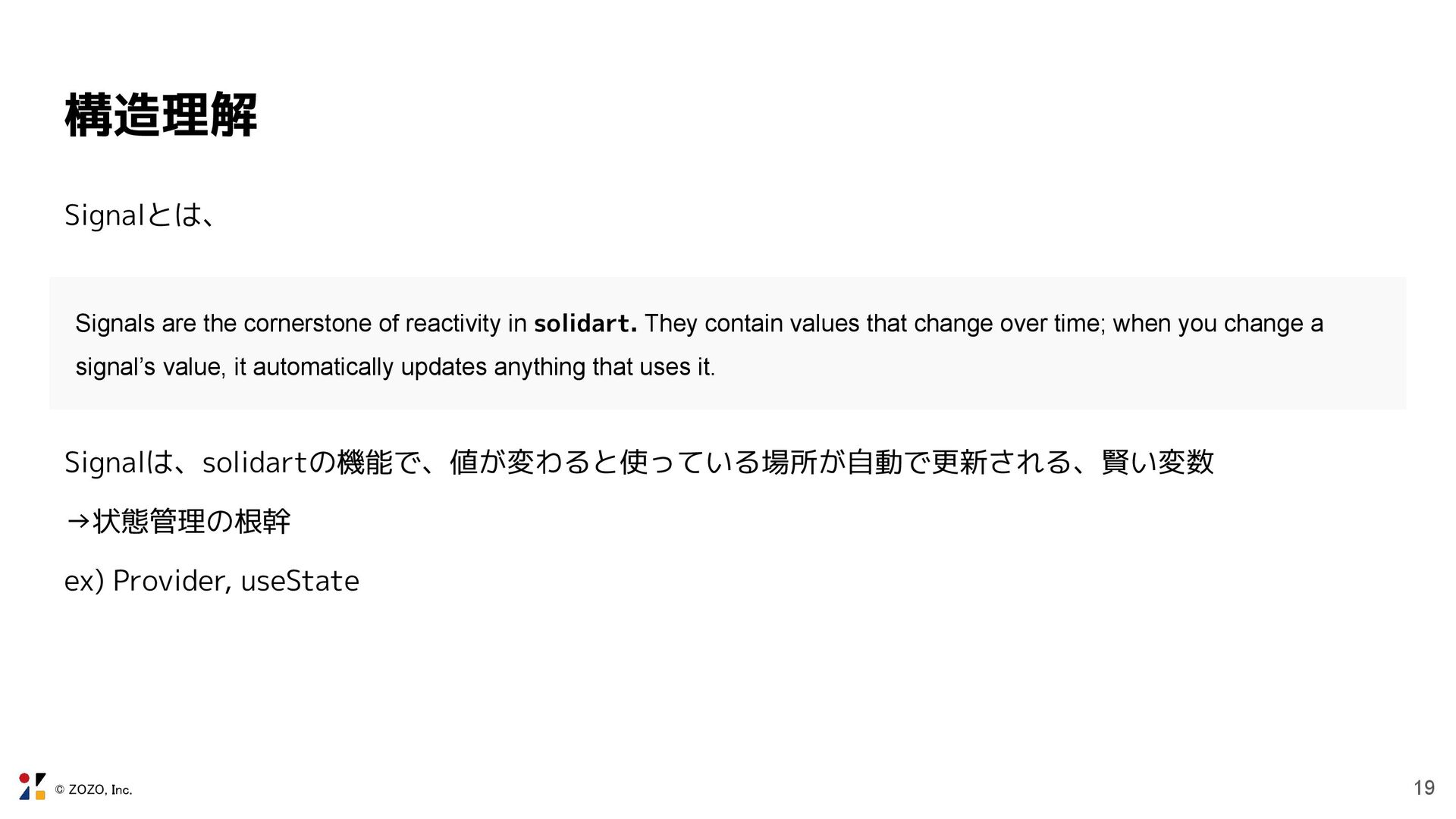 of reactivity in solidart. They contain values that change over time; when you change a signal’s value, it automatically updates anything that uses it. Signalは、solidartの機能で、値が変わると使っている場所が自動で更新される、賢い変数 →状態管理の根幹 ex) Provider, useState