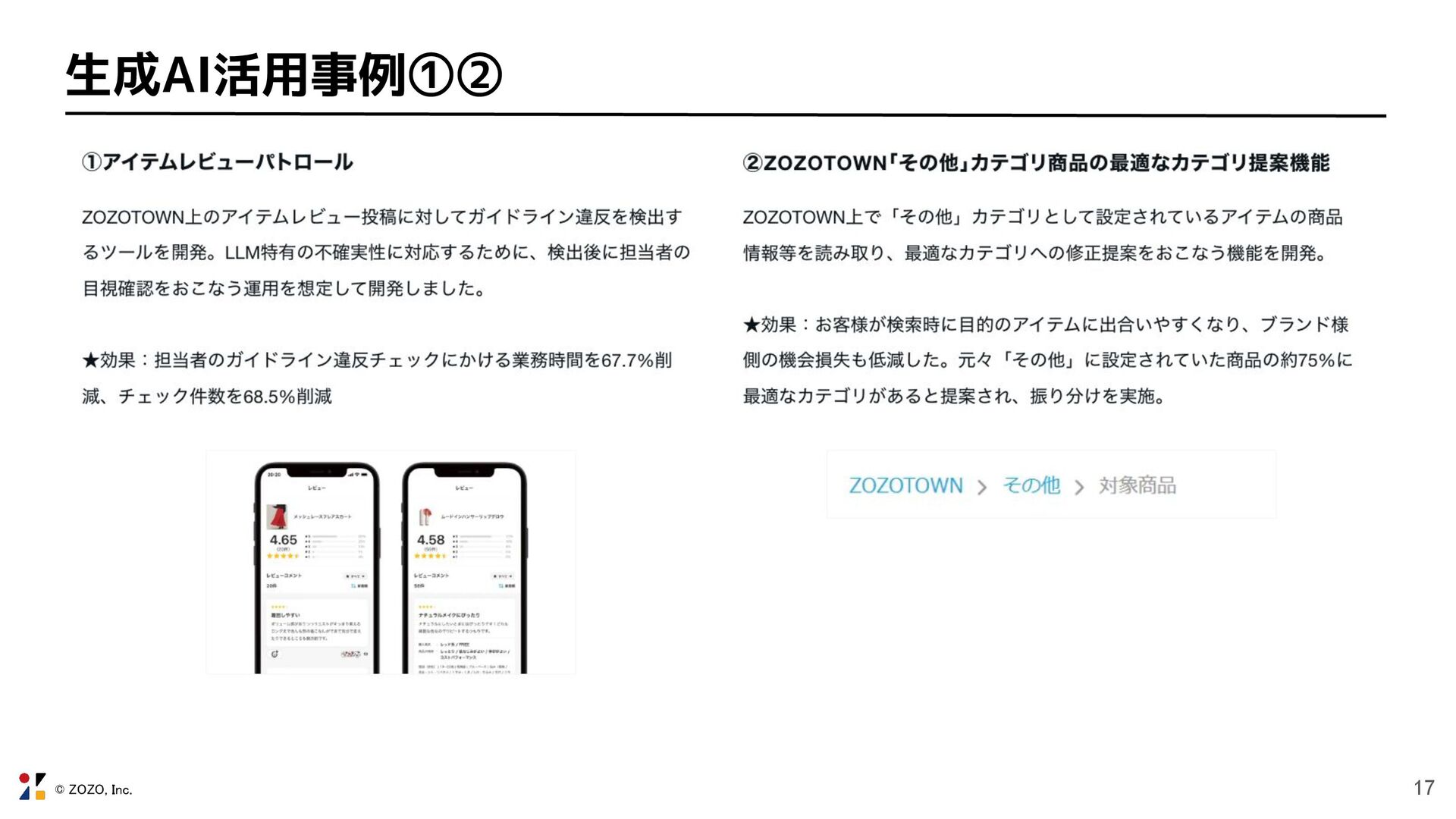 © ZOZO, Inc. 17 生成AI活用事例①②