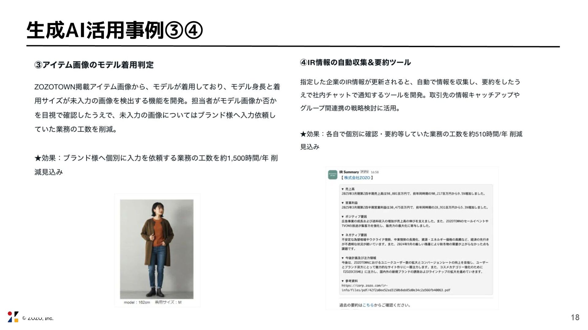 © ZOZO, Inc. 18 生成AI活用事例③④