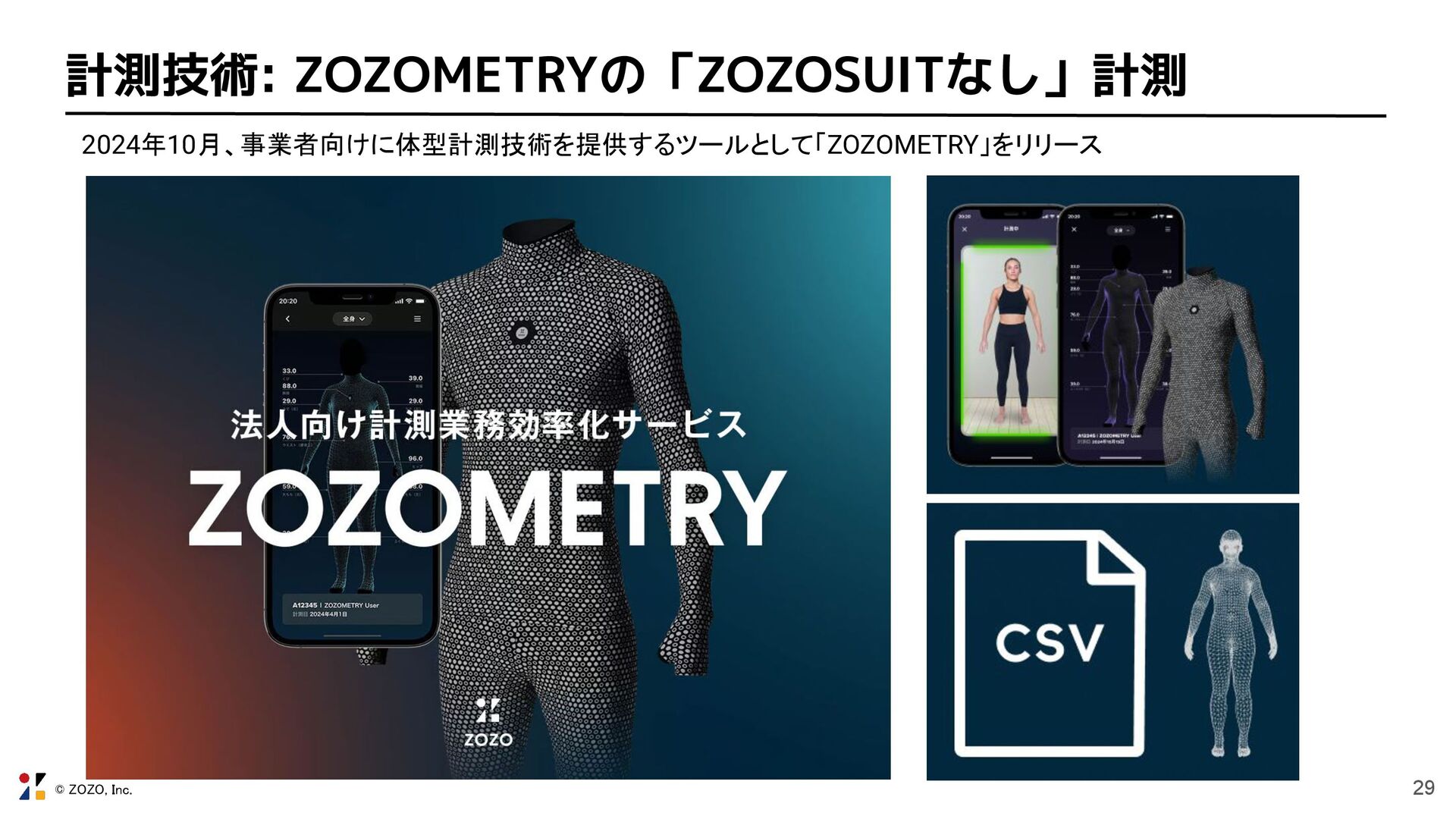 © ZOZO, Inc. 29 計測技術: ZOZOMETRYの「ZOZOSUITなし」計測 2024年10月、事業者向けに体型計測技術を提供するツールとして「ZOZOMETRY」をリリース
