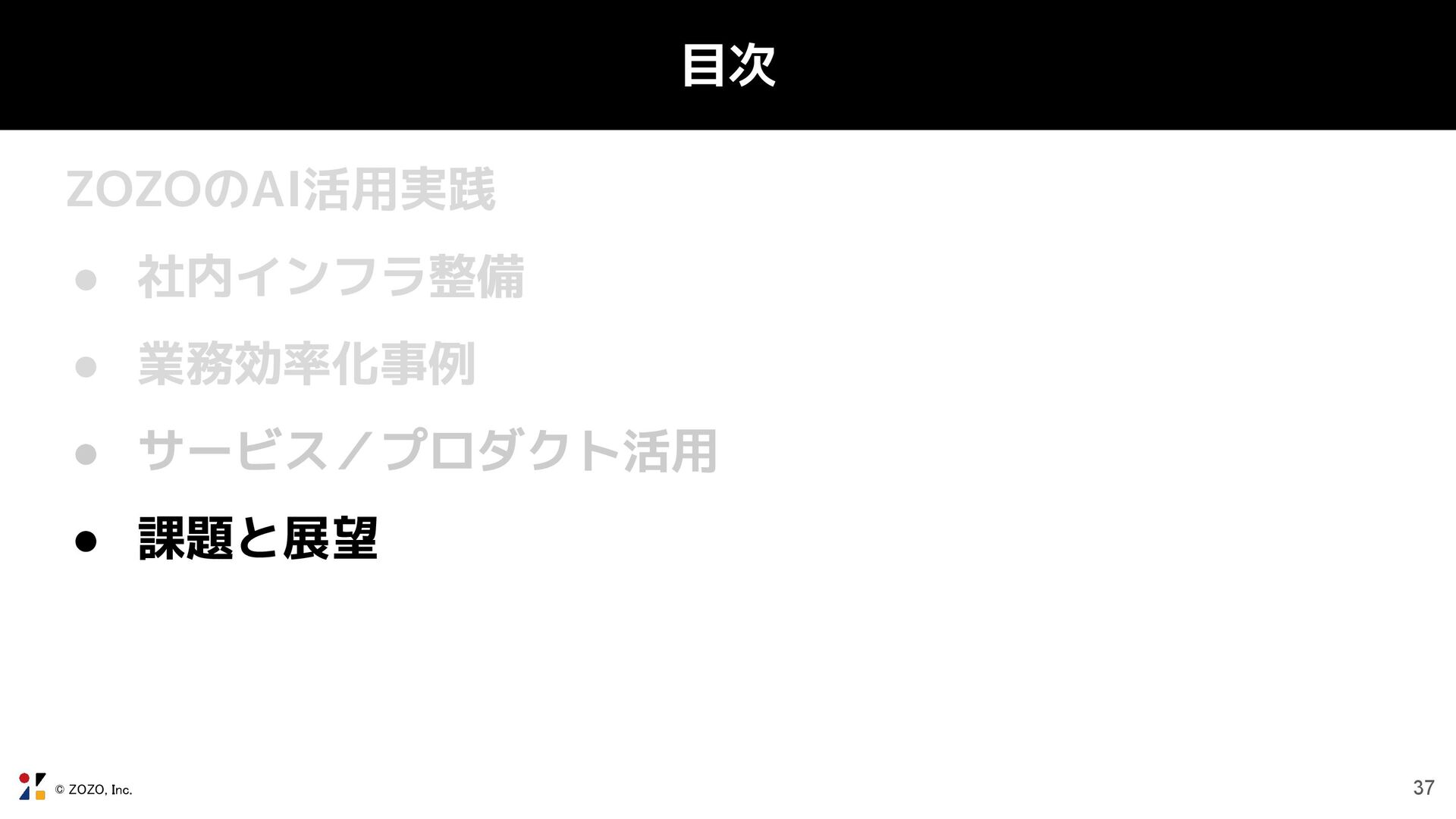 © ZOZO, Inc. 37 目次 ZOZOのAI活用実践 • 社内インフラ整備 • 業務効率化事例