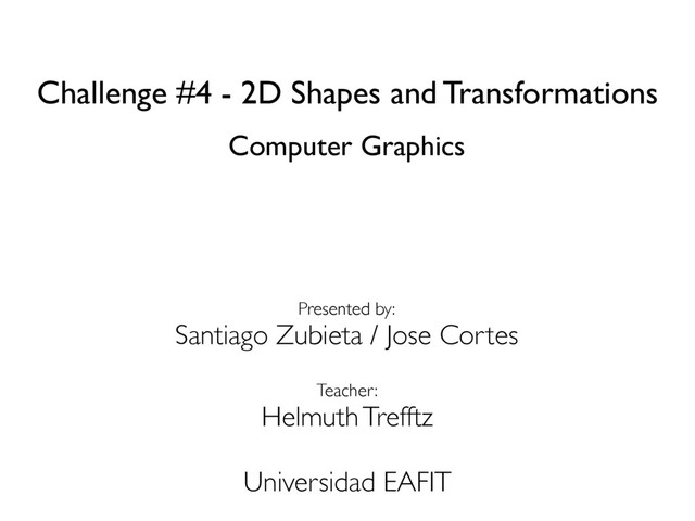 shapes. Shapes are defined as a list of 2D points. Each point will be considered as a single column Matrix, and will be multiplied with the desired transformation Matrix. Transformation Matrix Point that will be Transformed Briefing