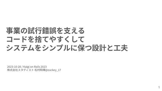 事業の試⾏錯誤を⽀える コードを捨てやすくして システムをシンプルに保つ設計と⼯夫 2023-10-28 / Kaigi on Rails 2023 株式会社スタディスト