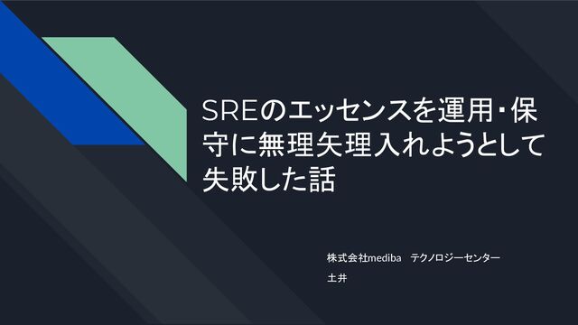 SREのエッセンスを運用・保 守に無理矢理入れようとして 失敗した話 株式会社mediba テクノロジーセンター 土井