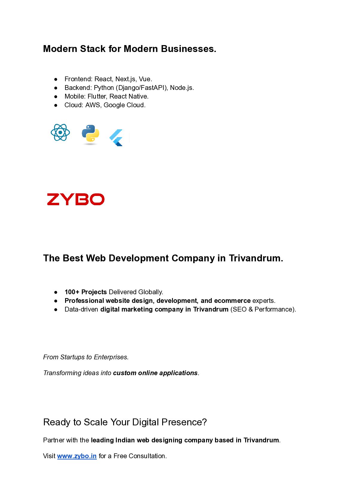 Whether you are looking for website developers in Trivandrum or a full-scale digital marketing company to boost your search rankings, Zybo Tech Lab provides the technical architecture and creative branding needed to win in 2026.