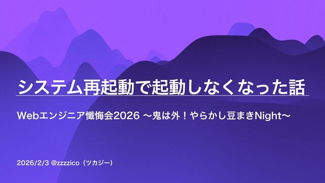 2026/2/3 AWebエンジニア懺悔会2026 ~鬼は外!やらかし豆まきNight~「システム再起動で起動しなくなった話」
